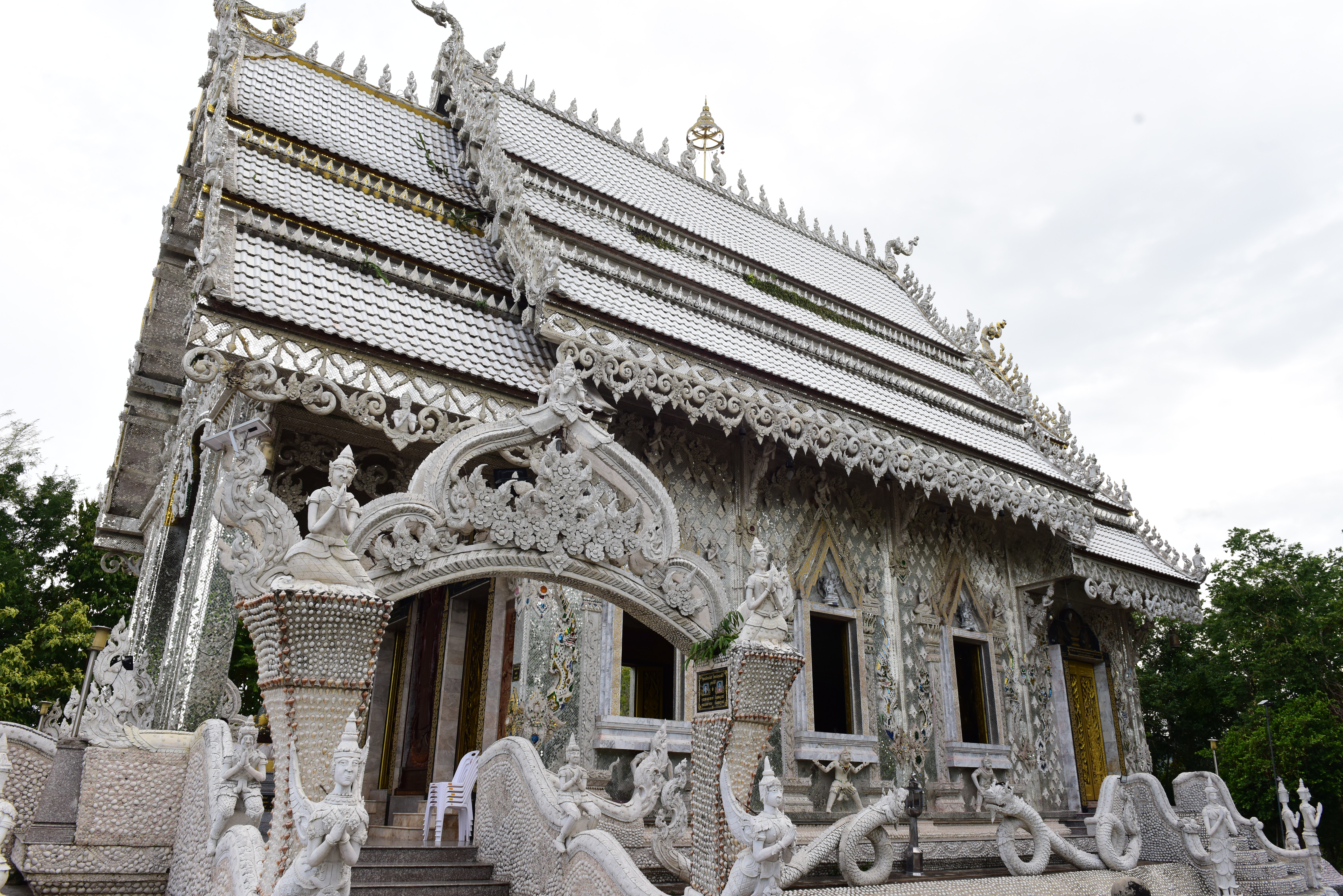 Initially existed as a hut, later evolved into a temple in early 2000. Unique seashell decorates temple exterior wall, intricate sculpture and wood carving incorporates Lanna cultural influence, highlighting the craftsmanship of local artisans