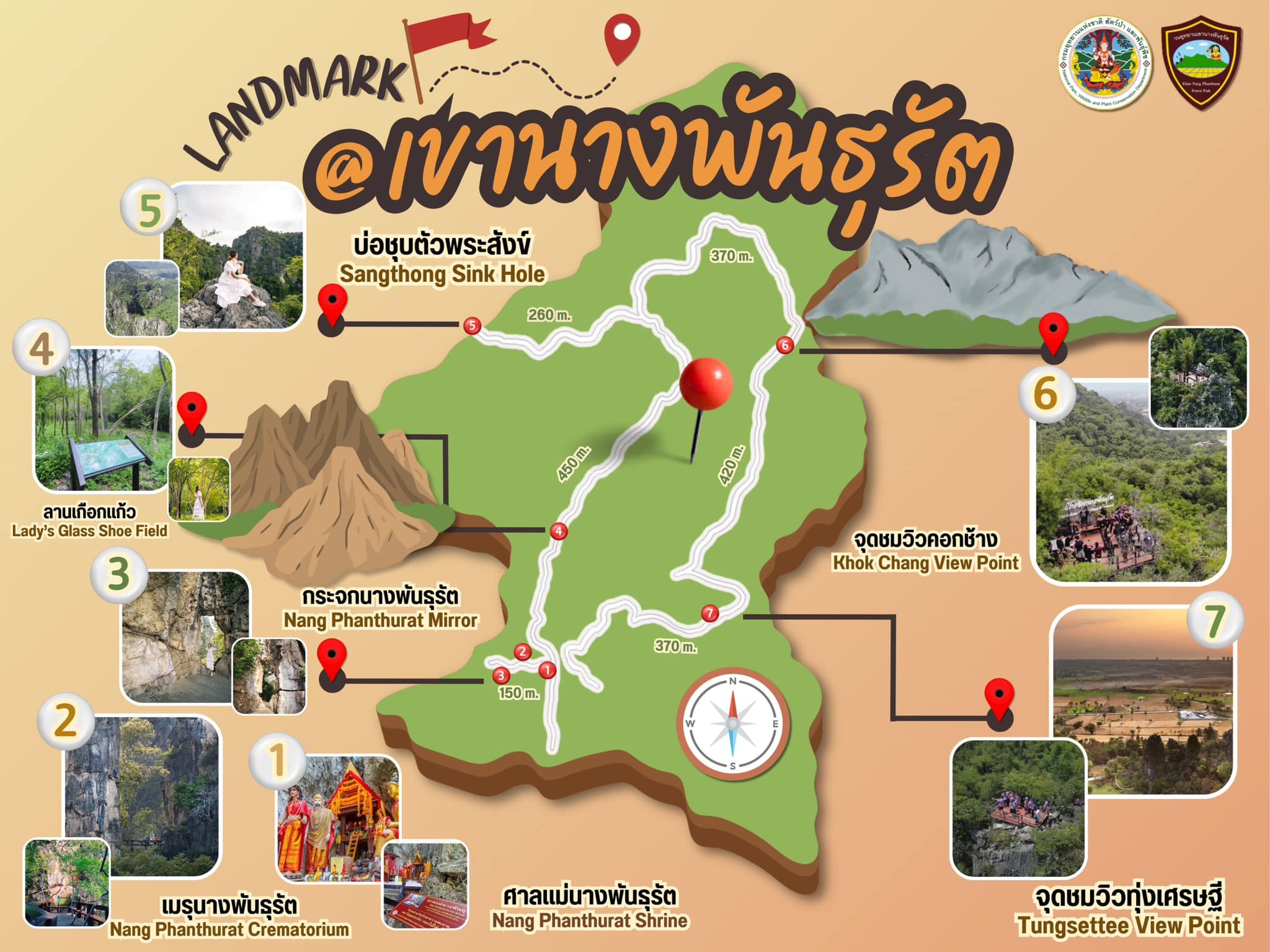 (40 mins away) Khao Nang Phanthurat is named after a female giant from religious fairly tale often studied in Thailand primary education due to its similarities to the character; but it’s known to local as Khao Nang Nhon (เขานางนอน). The forest park is a one of many natural restoration projects funded by Thai gov’t to preserve nature after devastating anti-communist war.